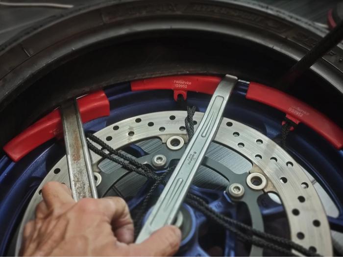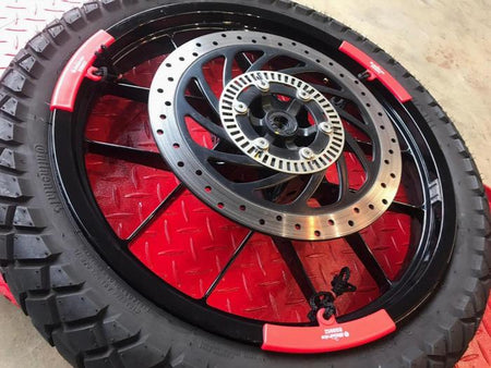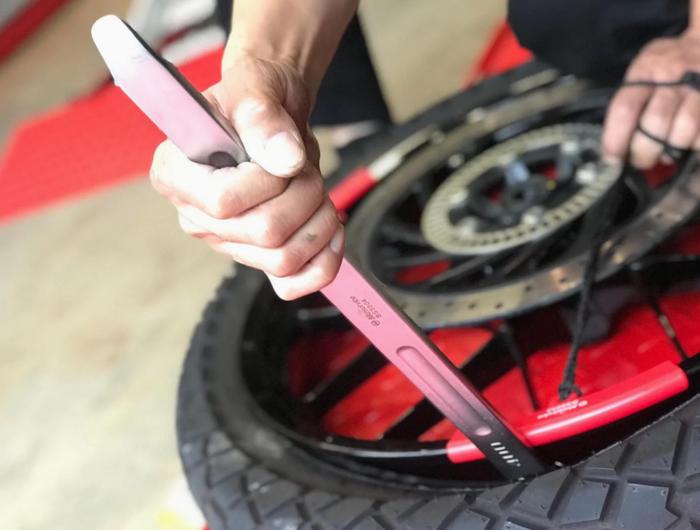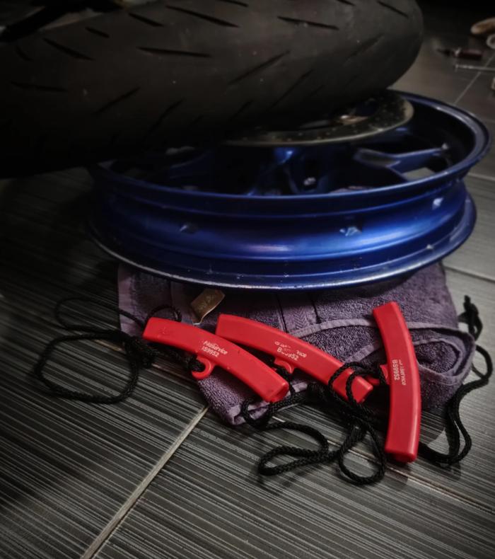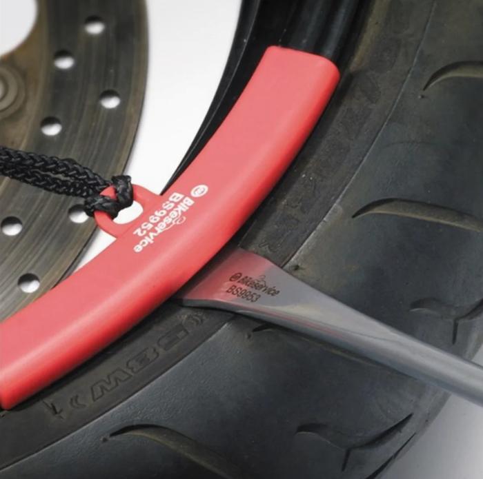 - Protector mounts over bead section of wheel rim providing a protective area for leverage with tyre lever