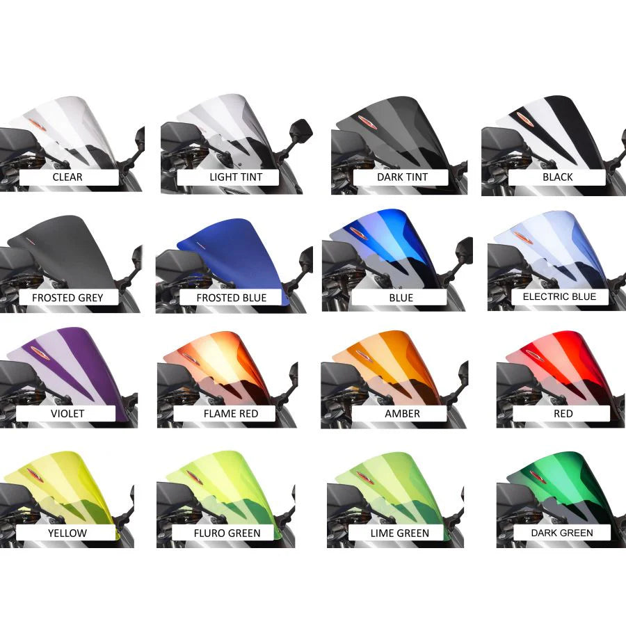 Light screens have been developed to fit naked bikes. Each screen is bike specific and is designed to offer the rider additional protection and more effective aerodynamics.