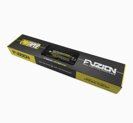 The Fuzion Handlebar is a new concept in high-performance control systems. The revolutionary flex locking system allows riders to choose between a stiffer, more controlled handlebar feel or a softer more shock absorbing feel depending on terrain conditions. Changing the bar from "Locked" to "Unlocked" takes only seconds. The bar itself utilizes ProTaper's exclusive aluminum alloy computer profile in a 4mm wall design for the ultimate in lightweight strength.