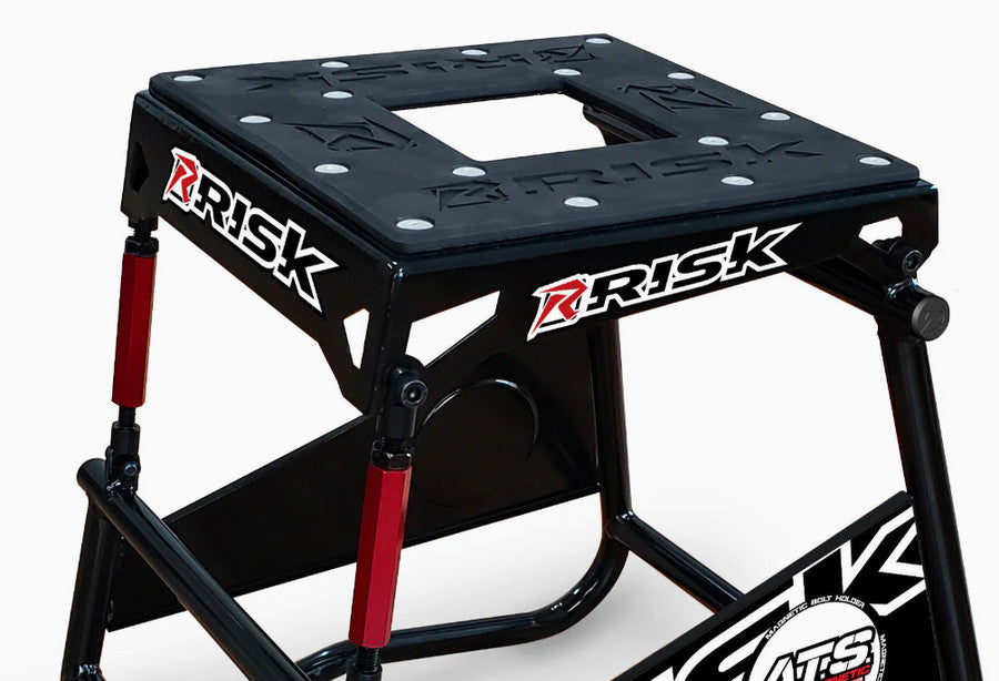 Bike repairs leave loose nuts and bolts everywhere. To eliminate this frustration, Risk Racing embedded magnets into both side panels of the A.T.S. Stand.