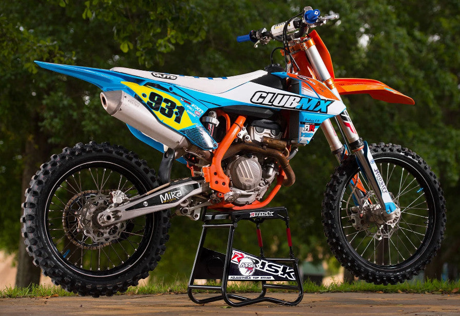 The chassis for every dirt bike brand, year, and model are designed a little differently, and as a result, not all bikes sit level on a traditional dirt bike stand. Subsequently, the front or back tire often touches the ground when placed on a stand. Aftermarket skid plates can also affect this angle leaving the bike dangling low on one side or the other. The Risk Racing A.T.S. Stand solves this issue.