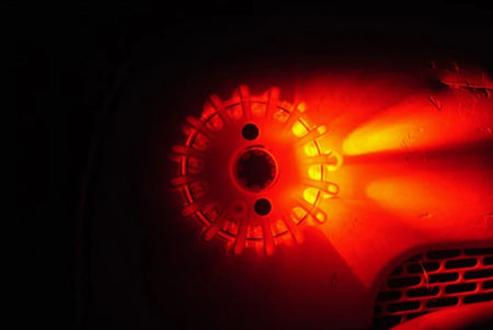 ^ Lampu LED Flasing 9 in 1 yang kompak (11 cm) dengan cahaya ultra-bright 360° dari 16 LED, terlihat hingga 1,5 km.