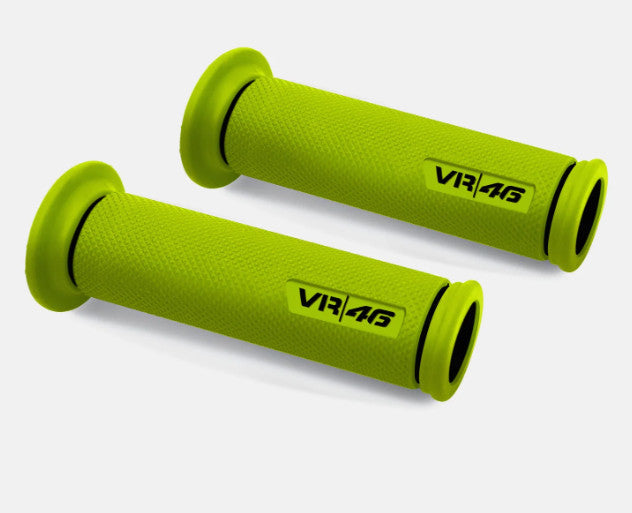 VR46 Grips are racing-style handlebar grips designed for both track and street use. Made from durable rubber, they provide excellent ergonomics and superior grip strength.